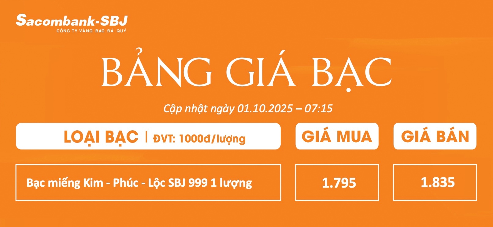 Bảng Tỷ Giá Bạc - Ngày 01/10/2025 - Bảng 1