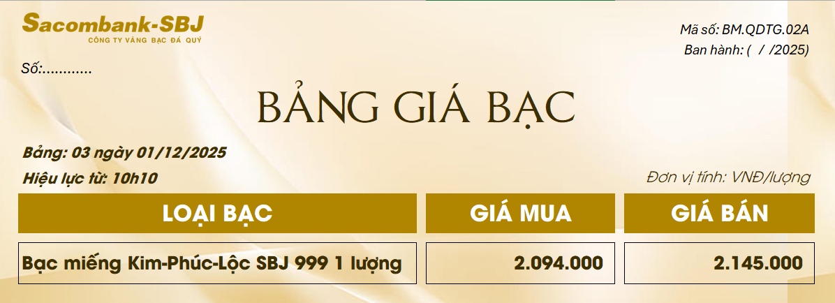 Bảng Tỷ Giá Bạc - Ngày 01/12/2025 - Bảng 3