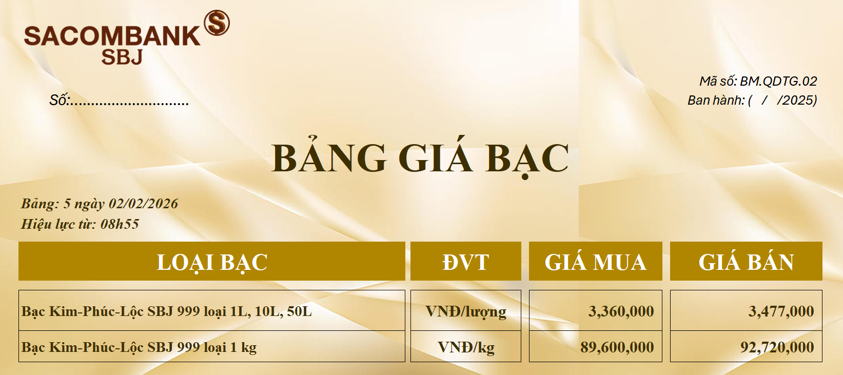 Bảng Tỷ Giá Bạc - Ngày 02/02/2026 - Bảng 5