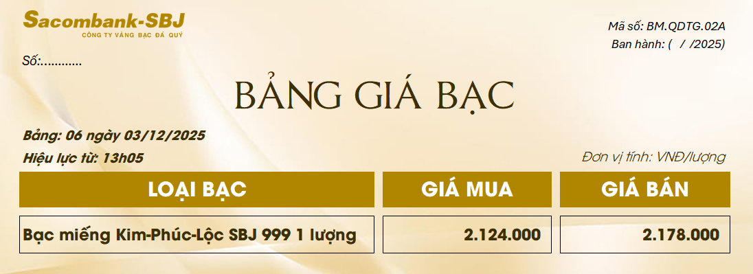 Bảng Tỷ Giá Bạc - Ngày 03/12/2025 - Bảng 6