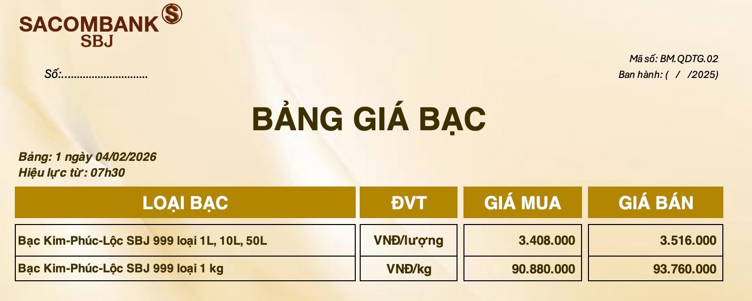 Bảng Tỷ Giá Bạc - Ngày 04/02/2026 - Bảng 1