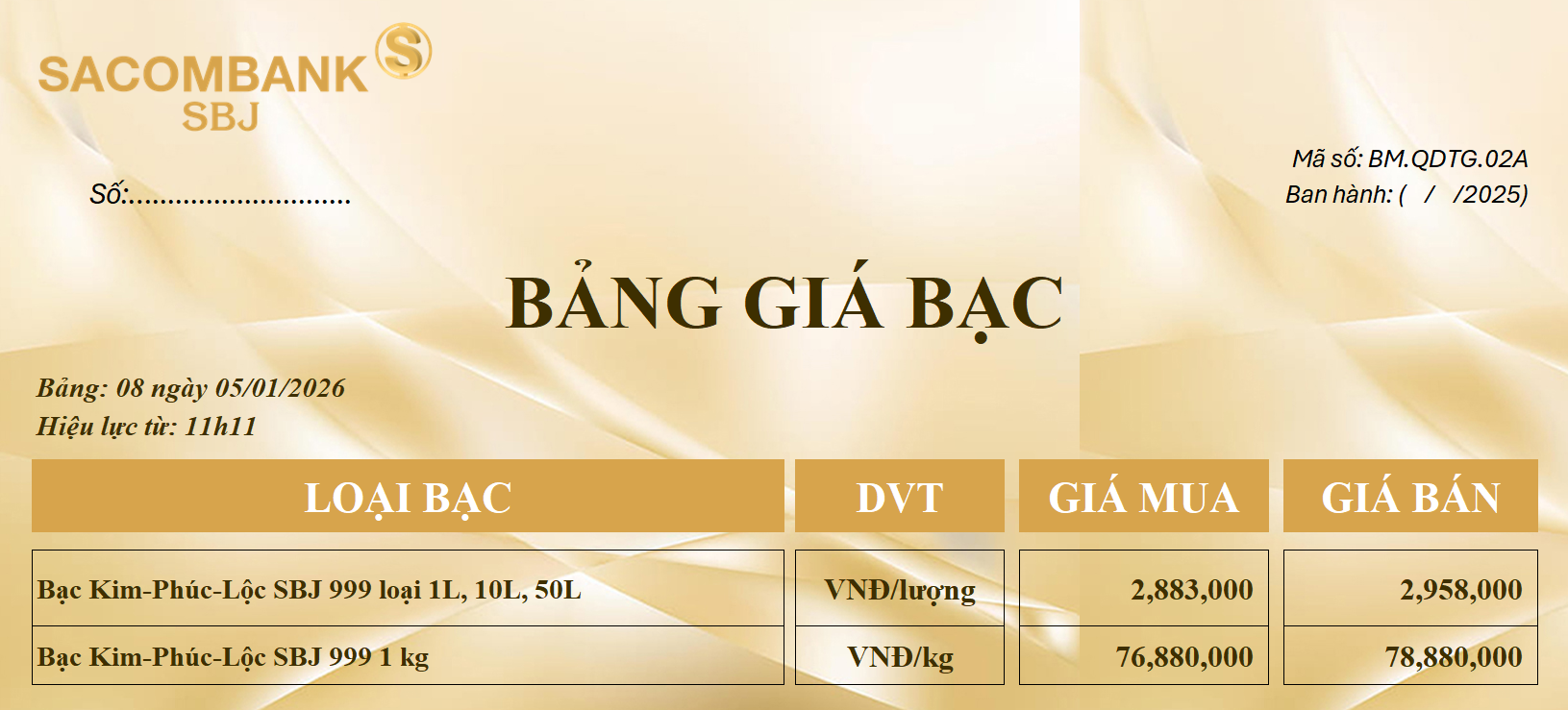 Bảng Tỷ Giá Bạc - Ngày 05/01/2026 - Bảng 8