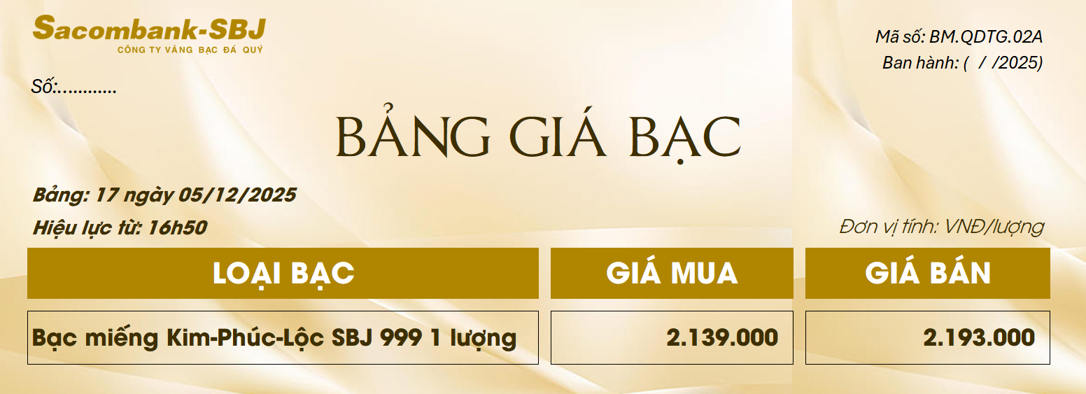 Bảng Tỷ Giá Bạc - Ngày 05/12/2025 - Bảng 17
