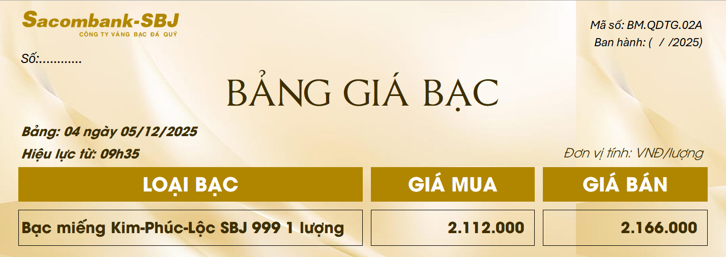 Bảng Tỷ Giá Bạc - Ngày 05/12/2025 - Bảng 4