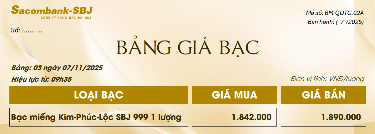 Bảng Tỷ Giá Bạc - Ngày 07/11/2025 - Bảng 3
