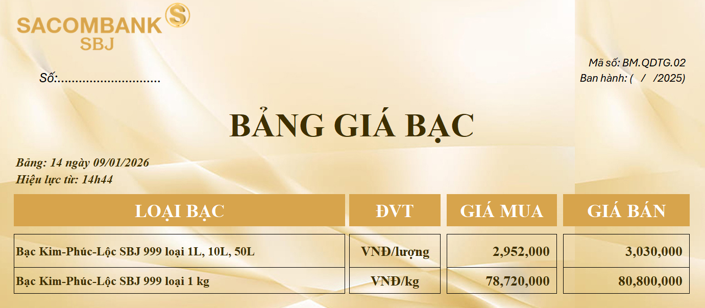 Bảng Tỷ Giá Bạc - Ngày 09/01/2026 - Bảng 14