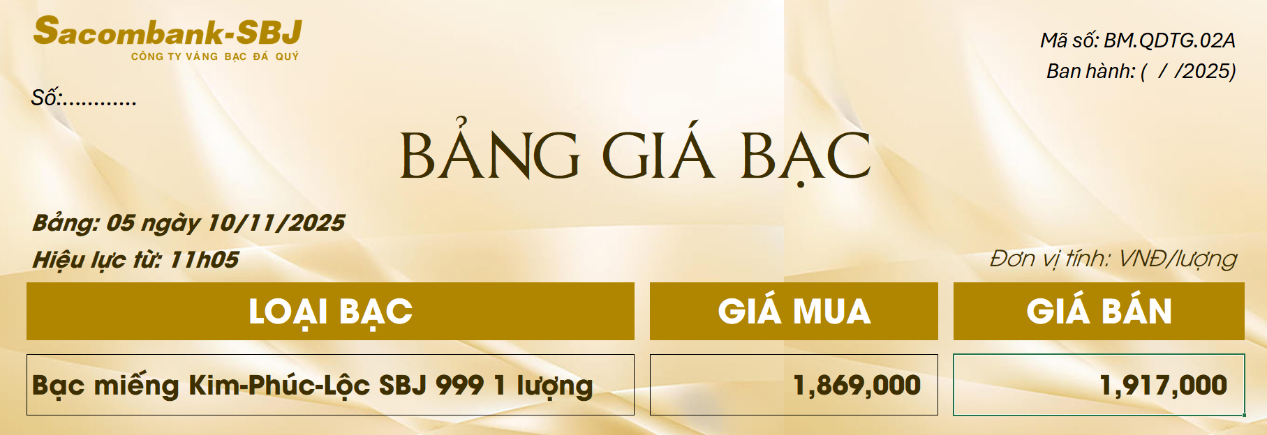 Bảng Tỷ Giá Bạc - Ngày 10/11/2025 - Bảng 5