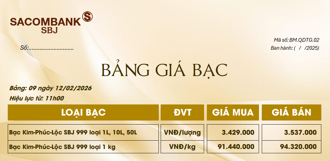 Bảng Tỷ Giá Bạc - Ngày 12/02/2026 - Bảng 9