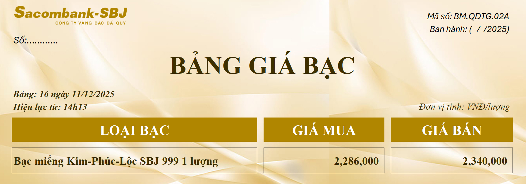 Bảng Tỷ Giá Bạc - Ngày 11/12/2025 - Bảng 16