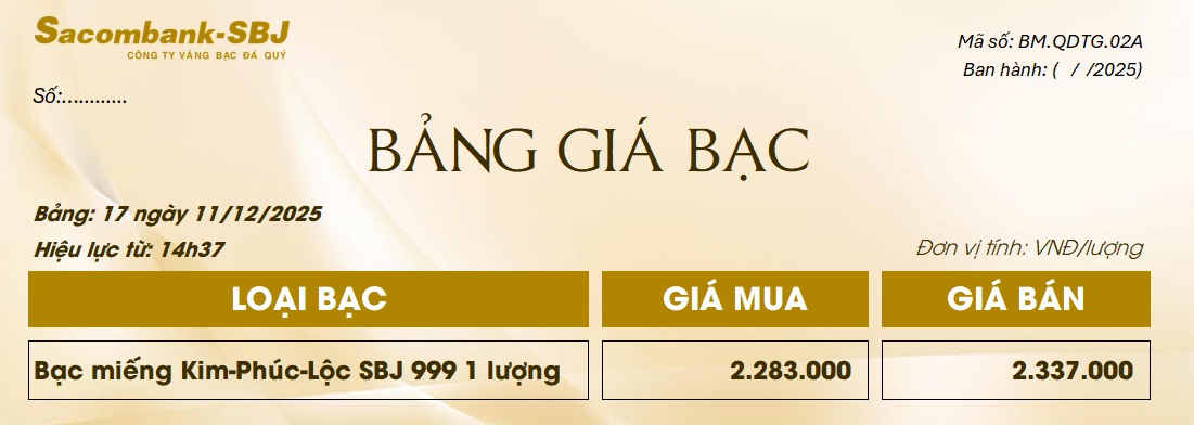 Bảng Tỷ Giá Bạc - Ngày 11/12/2025 - Bảng 17