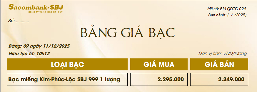 Bảng Tỷ Giá Bạc - Ngày 11/12/2025 - Bảng 9
