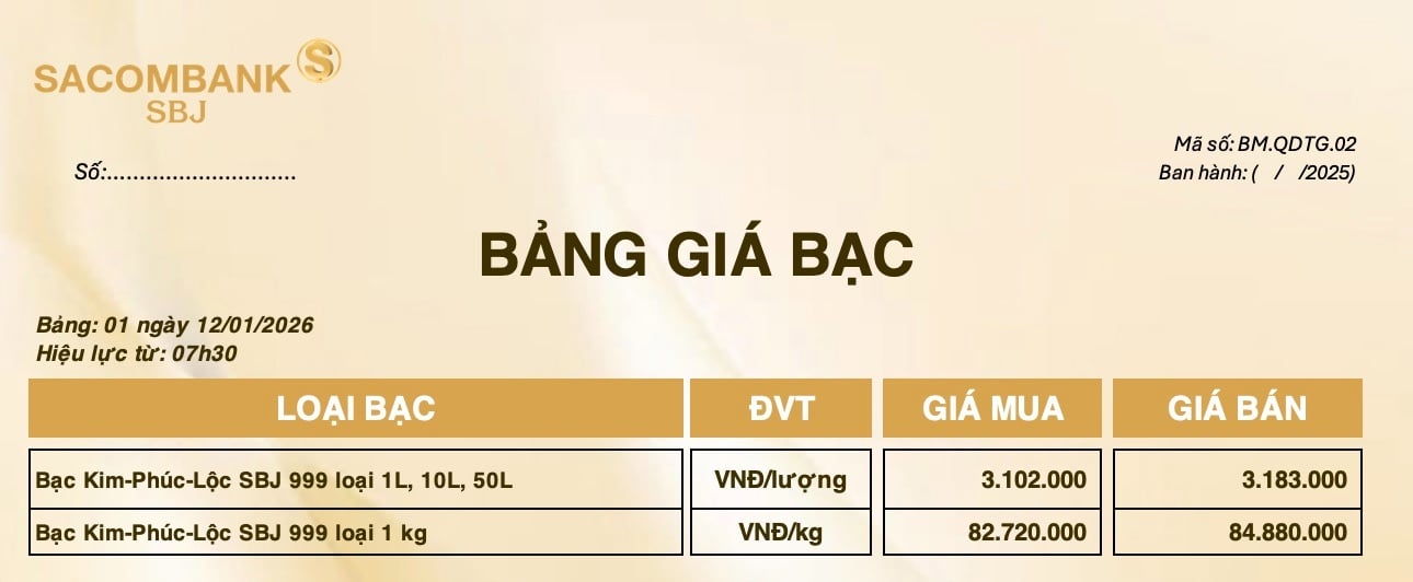 Bảng Tỷ Giá Bạc - Ngày 12/01/2026 - Bảng 1