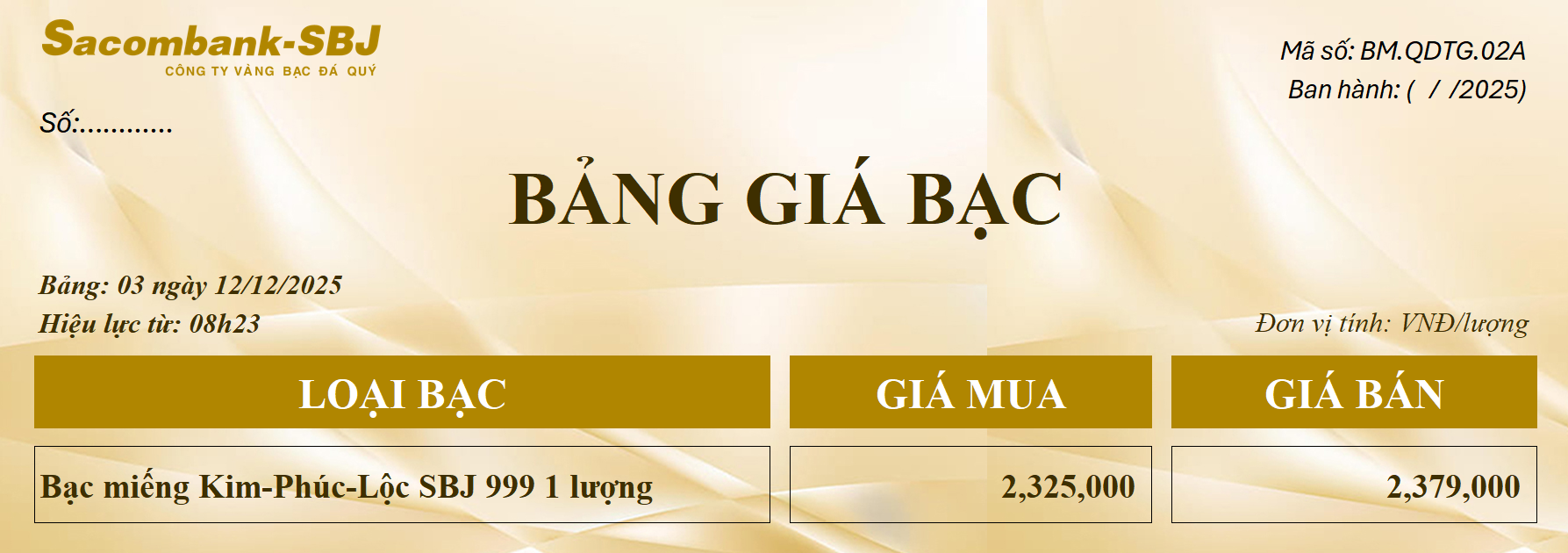 Bảng Tỷ Giá Bạc - Ngày 12/12/2025 - Bảng 3
