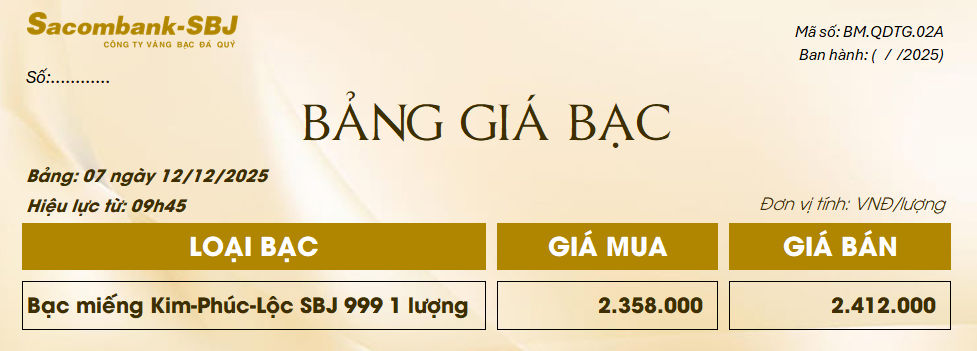 Bảng Tỷ Giá Bạc - Ngày 12/12/2025 - Bảng 7