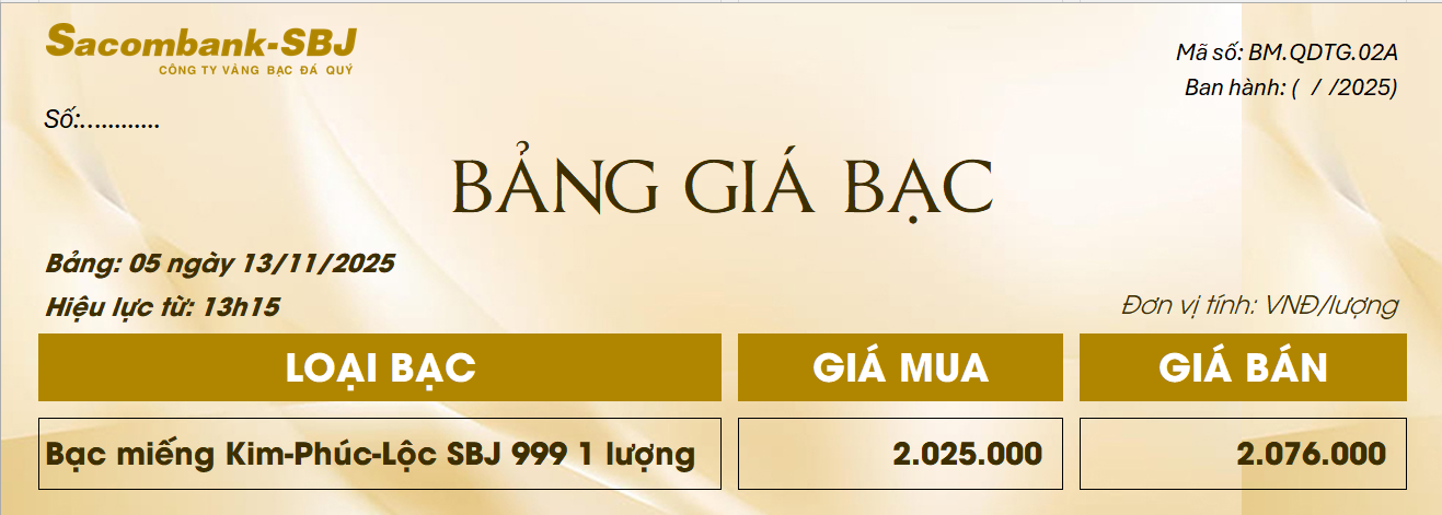 Bảng Tỷ Giá Bạc - Ngày 13/11/2025 - Bảng 5