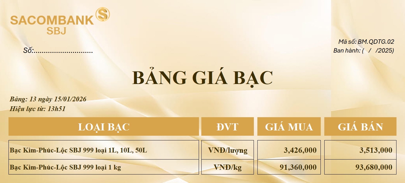 Bảng Tỷ Giá Bạc - Ngày 15/01/2026 - Bảng 13