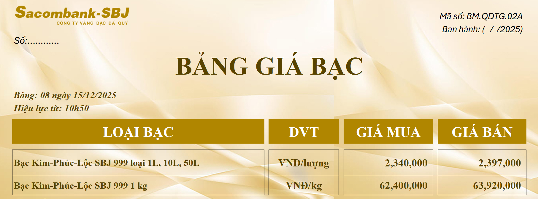 Bảng Tỷ Giá Bạc - Ngày 15/12/2025 - Bảng 8