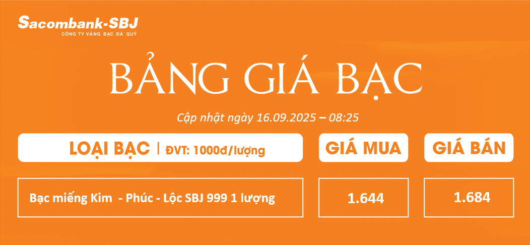 Bảng Tỷ Giá Bạc - Ngày 16/09/2025 - Bảng 1