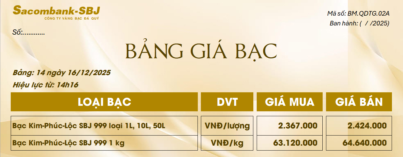 Bảng Tỷ Giá Bạc - Ngày 16/12/2025 - Bảng 14