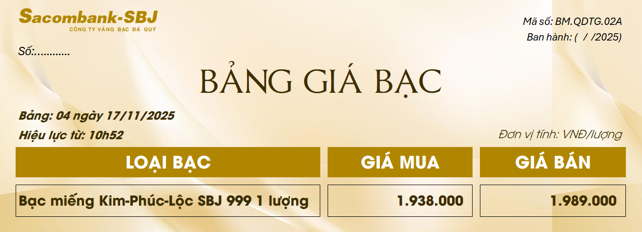 Bảng Tỷ Giá Bạc - Ngày 17/11/2025 - Bảng 4
