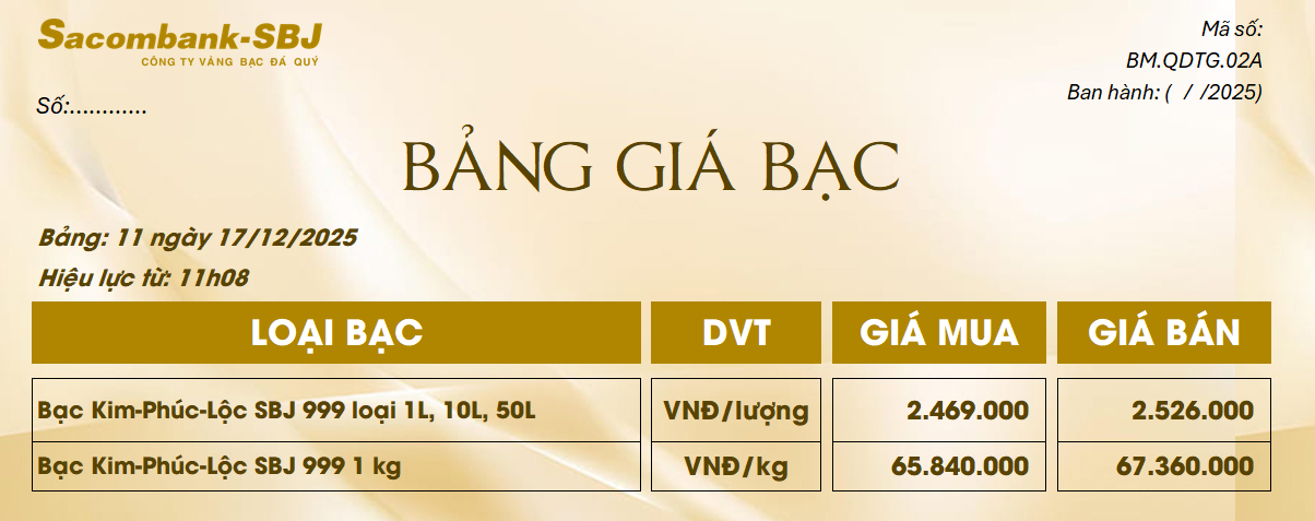 Bảng Tỷ Giá Bạc - Ngày 17/12/2025 - Bảng 11