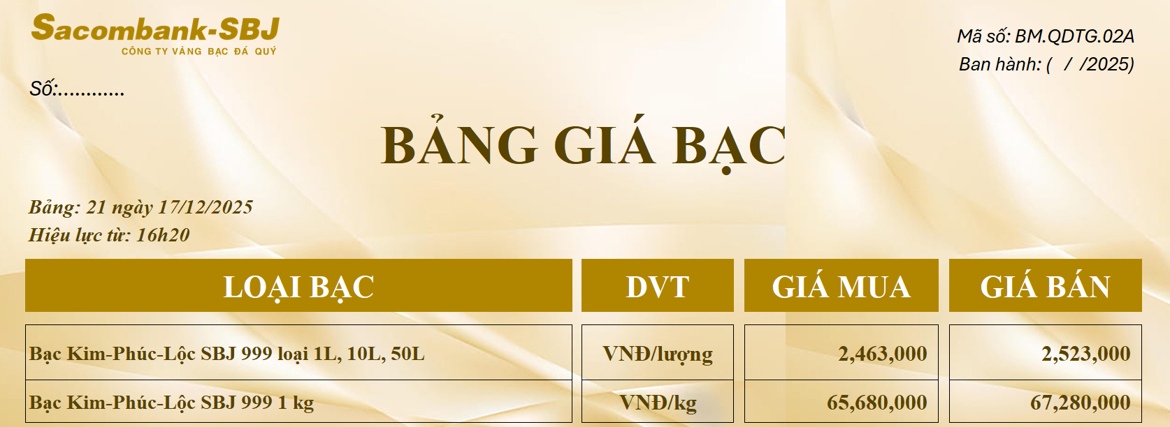 Bảng Tỷ Giá Bạc - Ngày 17/12/2025 - Bảng 21