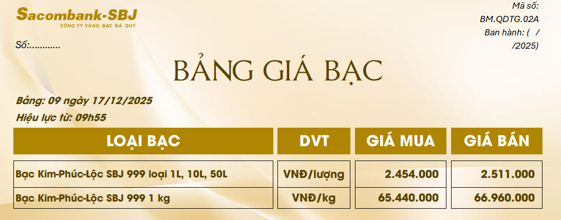 Bảng Tỷ Giá Bạc - Ngày 17/12/2025 - Bảng 9