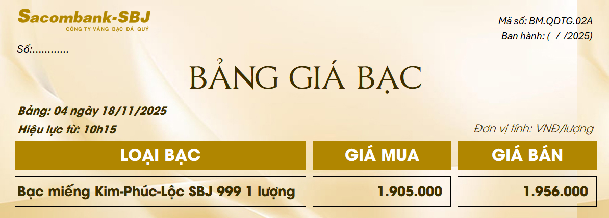 Bảng Tỷ Giá Bạc - Ngày 18/11/2025 - Bảng 4