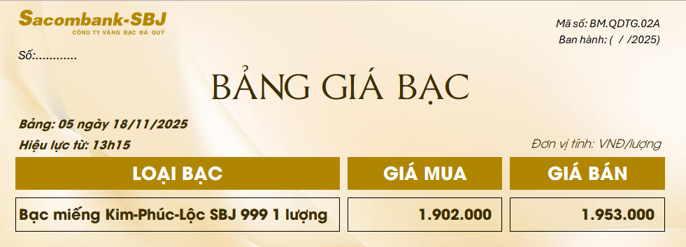 Bảng Tỷ Giá Bạc - Ngày 18/11/2025 - Bảng 5
