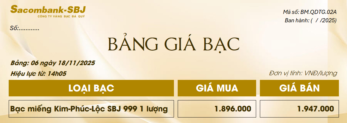 Bảng Tỷ Giá Bạc - Ngày 18/11/2025 - Bảng 6
