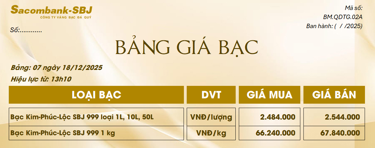 Bảng Tỷ Giá Bạc - Ngày 18/12/2025 - Bảng 7
