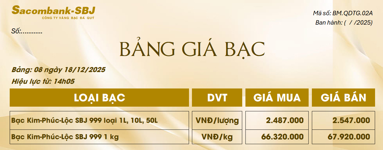 Bảng Tỷ Giá Bạc - Ngày 18/12/2025 - Bảng 8