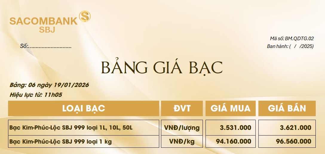 Bảng Tỷ Giá Bạc - Ngày 19/01/2026 - Bảng 6