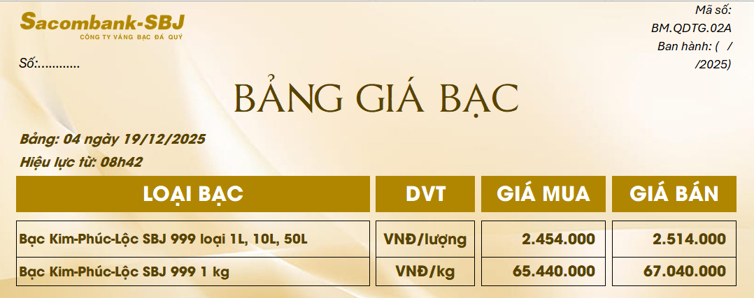 Bảng Tỷ Giá Bạc - Ngày 19/12/2025 - Bảng 4