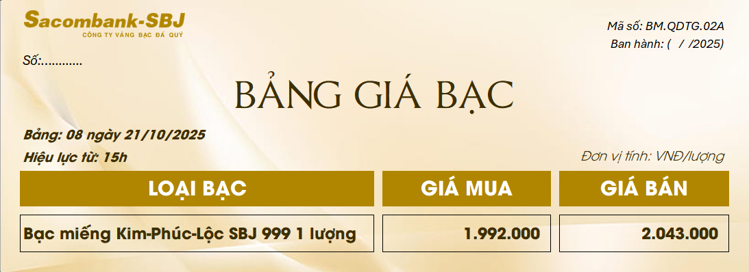Bảng Tỷ Giá Bạc - Ngày 21/10/2025 - Bảng 8