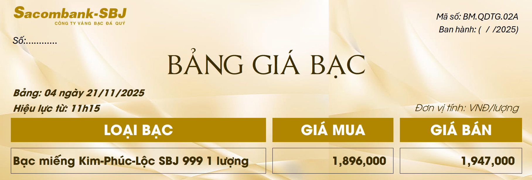 Bảng Tỷ Giá Bạc - Ngày 21/11/2025 - Bảng 4
