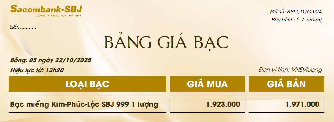 Bảng Tỷ Giá Bạc - Ngày 22/10/2025 - Bảng 5