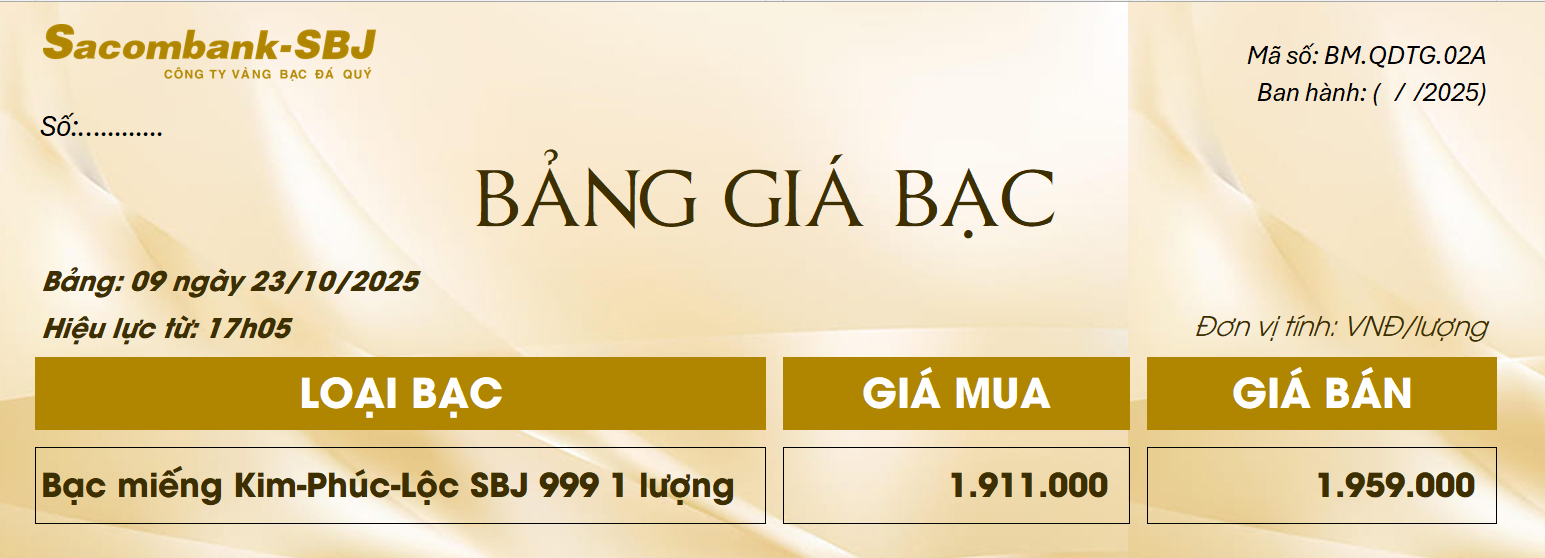 Bảng Tỷ Giá Bạc - Ngày 23/10/2025 - Bảng 9