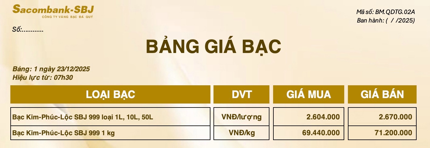 Bảng Tỷ Giá Bạc - Ngày 23/12/2025 - Bảng 1