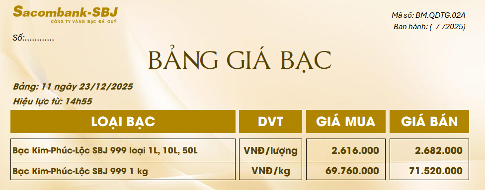 Bảng Tỷ Giá Bạc - Ngày 23/12/2025 - Bảng 11