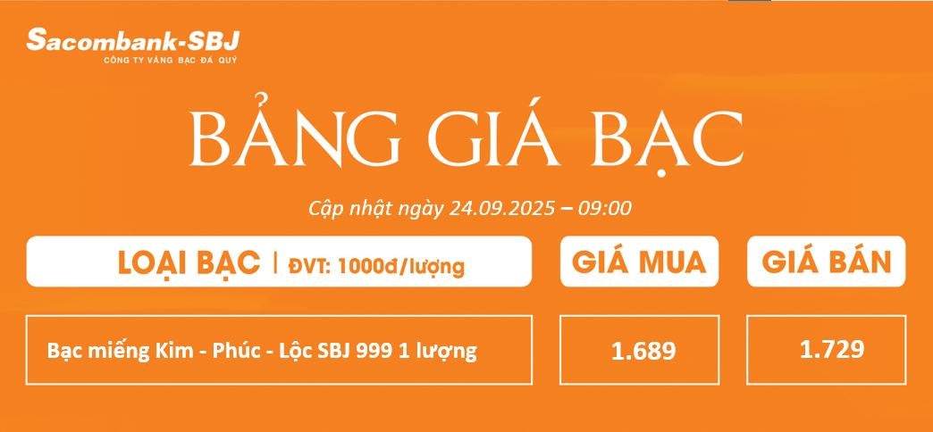Bảng Tỷ Giá Bạc - Ngày 24/09/2025 - Bảng 2