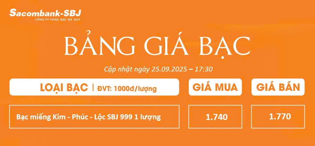 Bảng Tỷ Giá Bạc - Ngày 25/09/2025 - Bảng 6