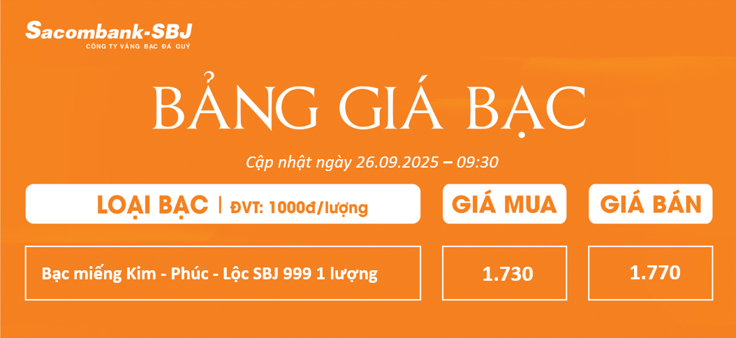 Bảng Tỷ Giá Bạc - Ngày 26/09/2025 - Bảng 2