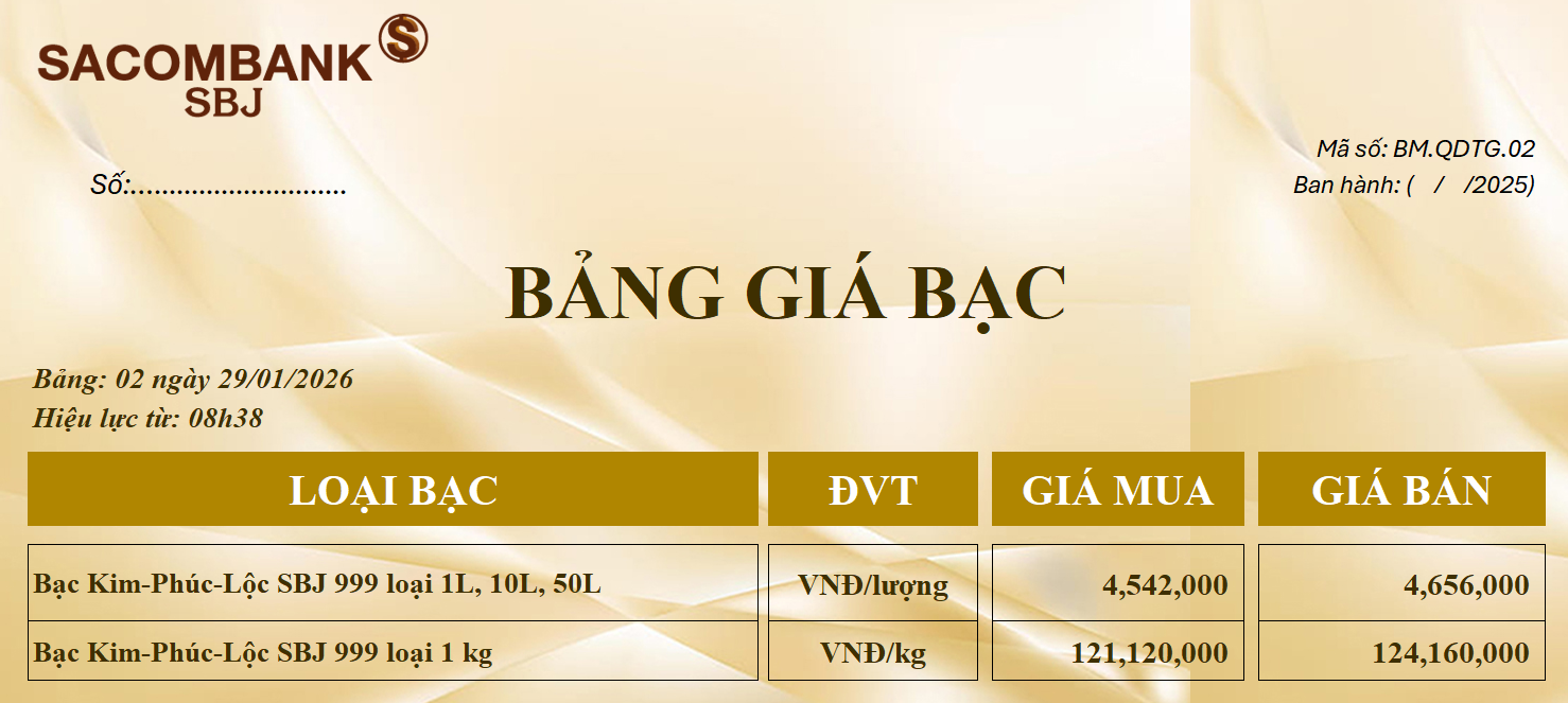 Bảng Tỷ Giá Bạc - Ngày 29/01/2026 - Bảng 2