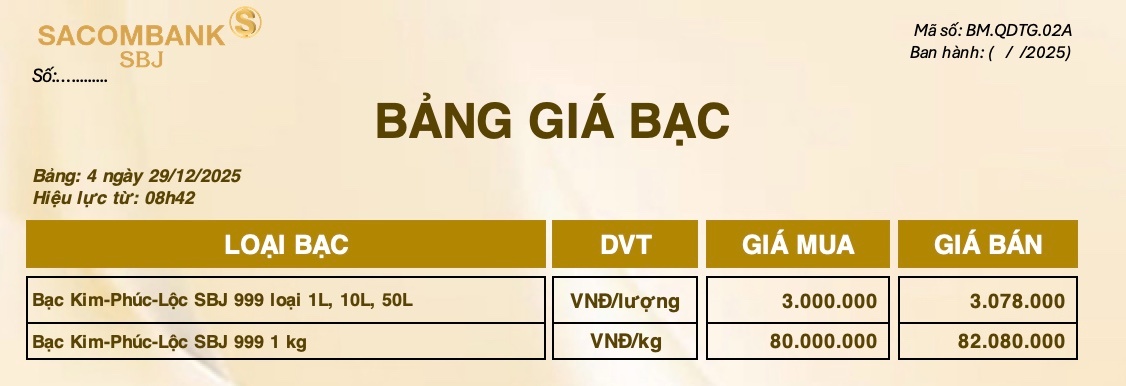 Bảng Tỷ Giá Bạc - Ngày 29/12/2025 - Bảng 4