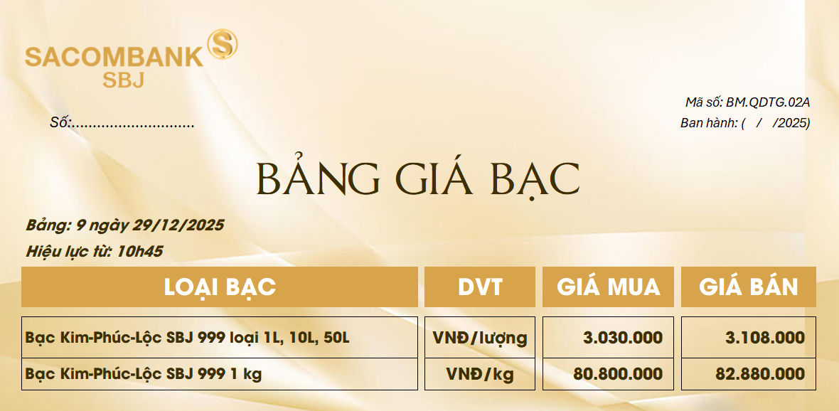 Bảng Tỷ Giá Bạc - Ngày 29/12/2025 - Bảng 9
