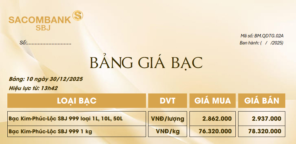 Bảng Tỷ Giá Bạc - Ngày 30/12/2025 - Bảng 10