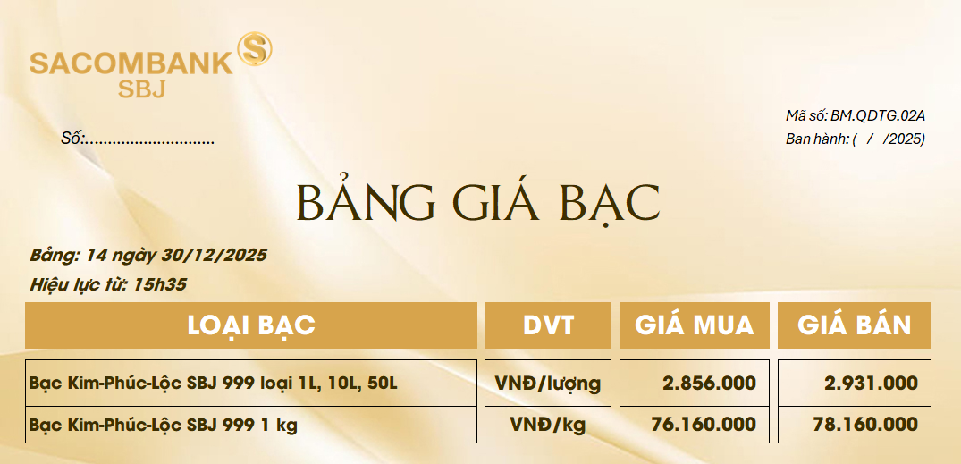 Bảng Tỷ Giá Bạc - Ngày 30/12/2025 - Bảng 14