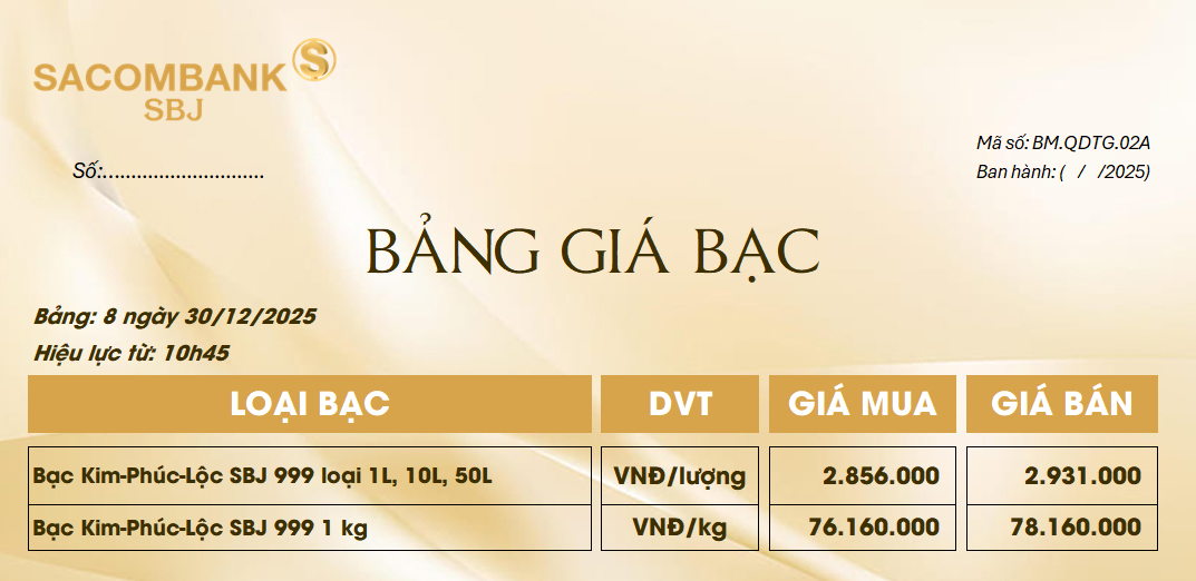 Bảng Tỷ Giá Bạc - Ngày 30/12/2025 - Bảng 8