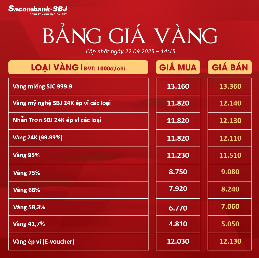 Bảng Tỷ Giá Vàng - Ngày 22/09/2025 - Bảng 2